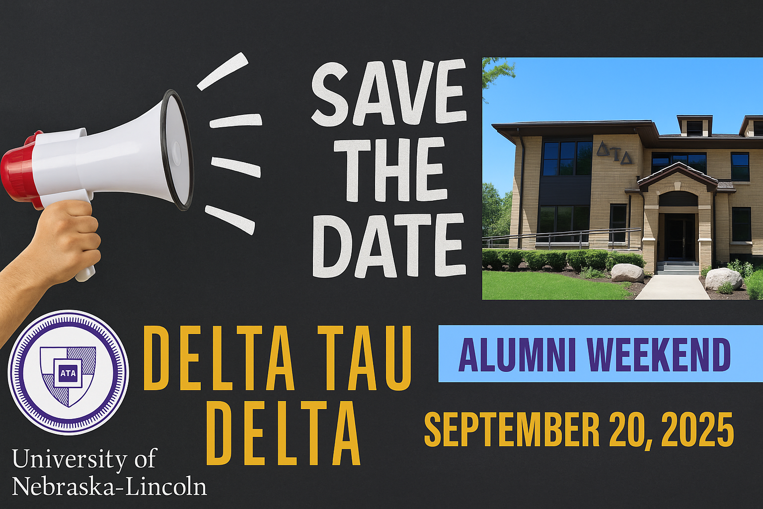 The Beta Tau Chapter of Delta Tau Delta and the House Corporation cordially invite Delt alumni and your families to the 2025 Alumni Weekend. The weekend will be held on September 20, 2025, in conjunction with the Husker football game against Michigan! More details to come!